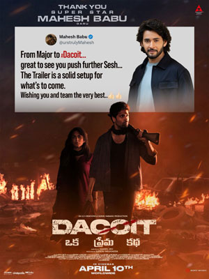Tollywood heroes Superstar Mahesh Babu and Man of Masses Jr. NTR have now applauded the trailer on their X accounts. Mahesh Babu said Sesh is pushing the envelope with each film and called the Dacoit trailer solid.